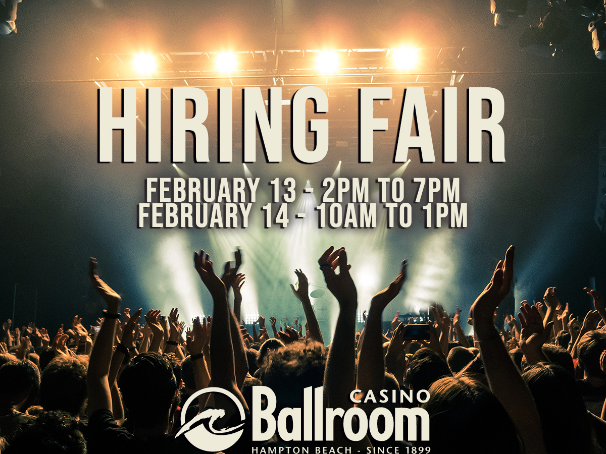 As one of New England’s most iconic music venues, the Casino Ballroom offers exciting opportunities to work in a fast-paced, energetic environment surrounded by unforgettable live entertainment. We invite you to visit our website https://casinoballroom.com/employment.php to explore current open positions and what we are looking for, then come meet us in person for an interview on Friday, February 13th from 2–7 PM or Saturday, February 14th from 10–1 PM at the venue, 169 Ocean Blvd Hampton Beach, NH.